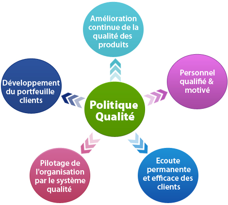 La politique qualité s’articule autour des 5 axes d’amélioration suivants :